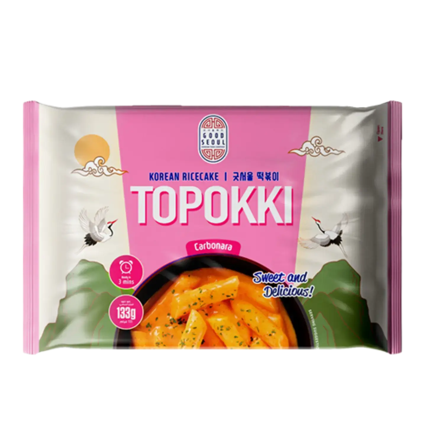 Good Seoul Topokki Carbonara brings together soft, chewy Korean rice cakes with a rich and creamy carbonara-style sauce. This delicious fusion combines the comforting taste of creamy pasta sauce with the fun texture of traditional Korean toppokki.