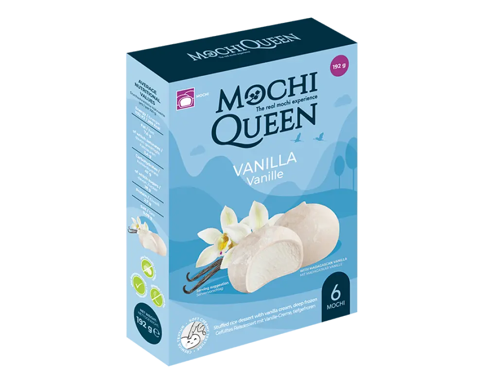 Mochi Queen Vanilla Mochi is a delightful Japanese-style dessert made with soft and chewy mochi rice dough filled with smooth and creamy vanilla-flavored filling. The delicate mochi texture perfectly complements the rich vanilla taste, creating a unique and satisfying sweet treat.